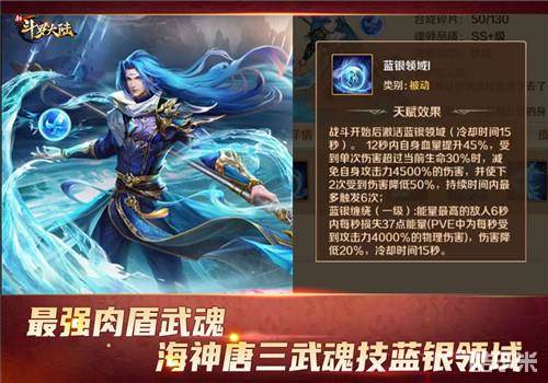 海神唐三武魂技蓝银领域,光看面板都能感受到它的恐怖,首先能够提升海神唐三接近一半的最大生命值,受到超过自身当前生命值百分之30的爆发伤害时还会被大量抵消伤害,12秒内这个特效居然还能触发6次。再加上能够降低敌人百分之20输出的蓝银缠绕技能,可以说整个武魂让海神唐三的肉发挥到了一个令敌人头疼的程度,触发的12秒内基本上是死不掉的,稳如泰山。