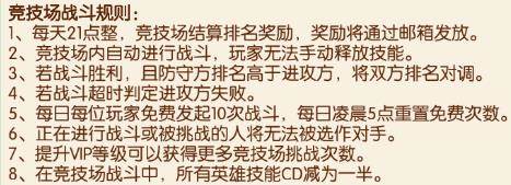 当玩家竞技场功能开启后,玩家就可以打开功能界面,对其他玩家发起挑战,挑战有一定的规则,如下: