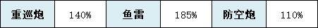 每次使用鱼雷时有15.0%(30.0%)的概率发射一轮特殊鱼雷弹幕(威力和弹幕样式依据技能等级)