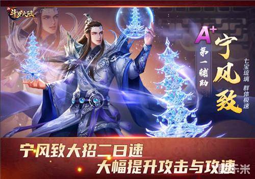 宁风致的大招“二曰:速”是以群体增益效果的技能,可以大幅提升全体友方魂师攻击力和攻击速度,持续8秒。