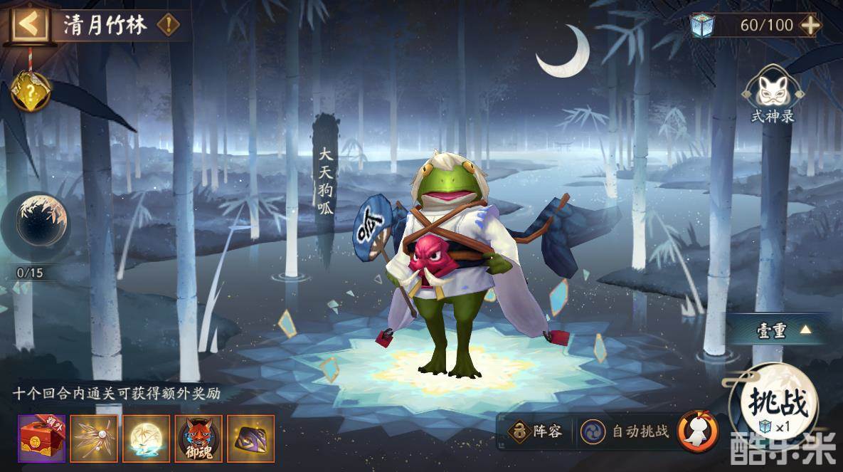 阴阳师们可通过消耗「幽竹灯」进行妖怪挑战,挑战共分为十重。每轮挑战胜利后将解锁更高重的妖怪,重数越高,战斗胜利获得的奖励越高。