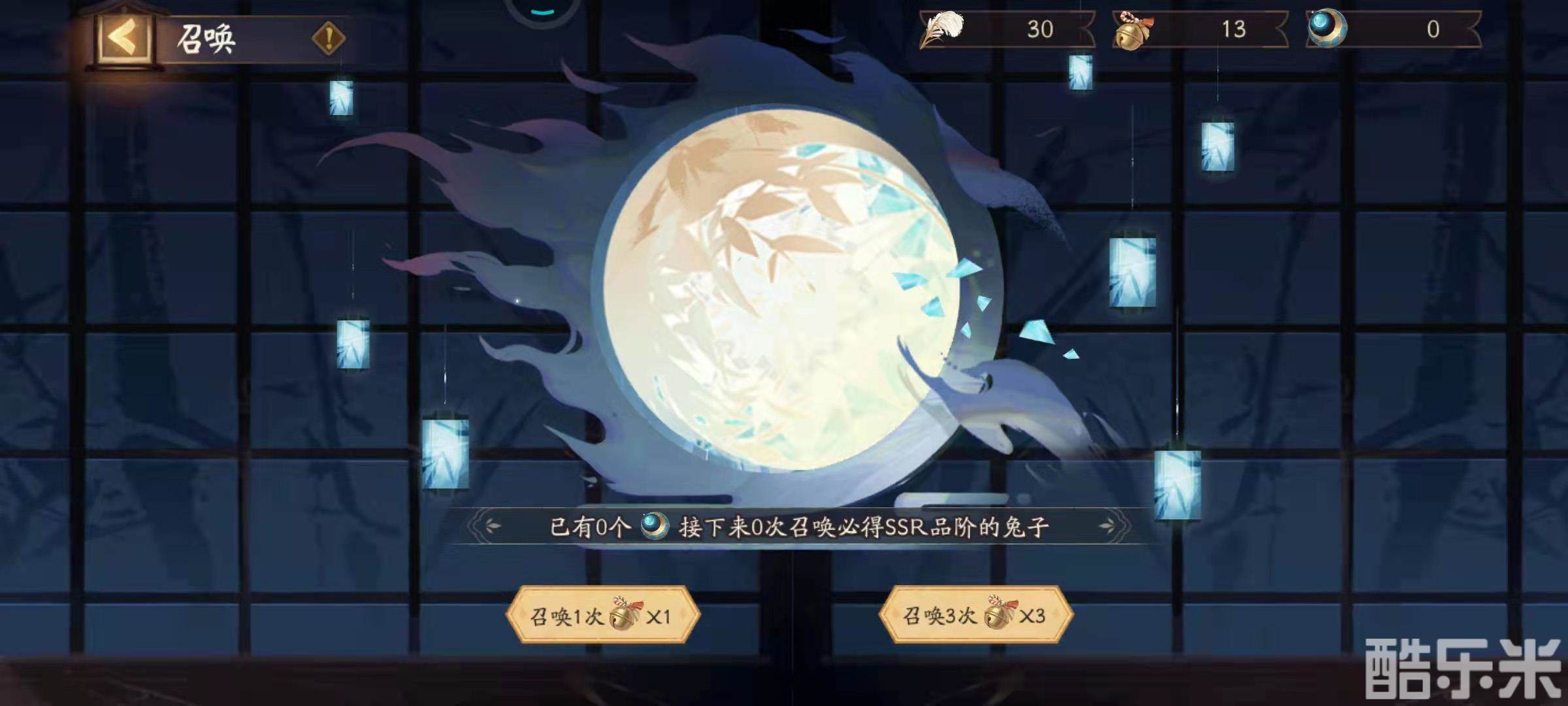 召唤所得的兔子们分别有R/SR/SSR三个品阶,阴阳师们通过使用「唤梦铃」以及「月之雫」共同召唤可获得1只SSR阶兔子。