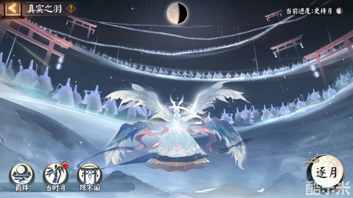等级达到15级的阴阳师们可点击庭院中的因幡辉夜姬,参与「真实之羽」活动。活动分为「清月竹林」、「羁绊」、「香道大会」、「逐月」、「琼宇阁」共五部分。