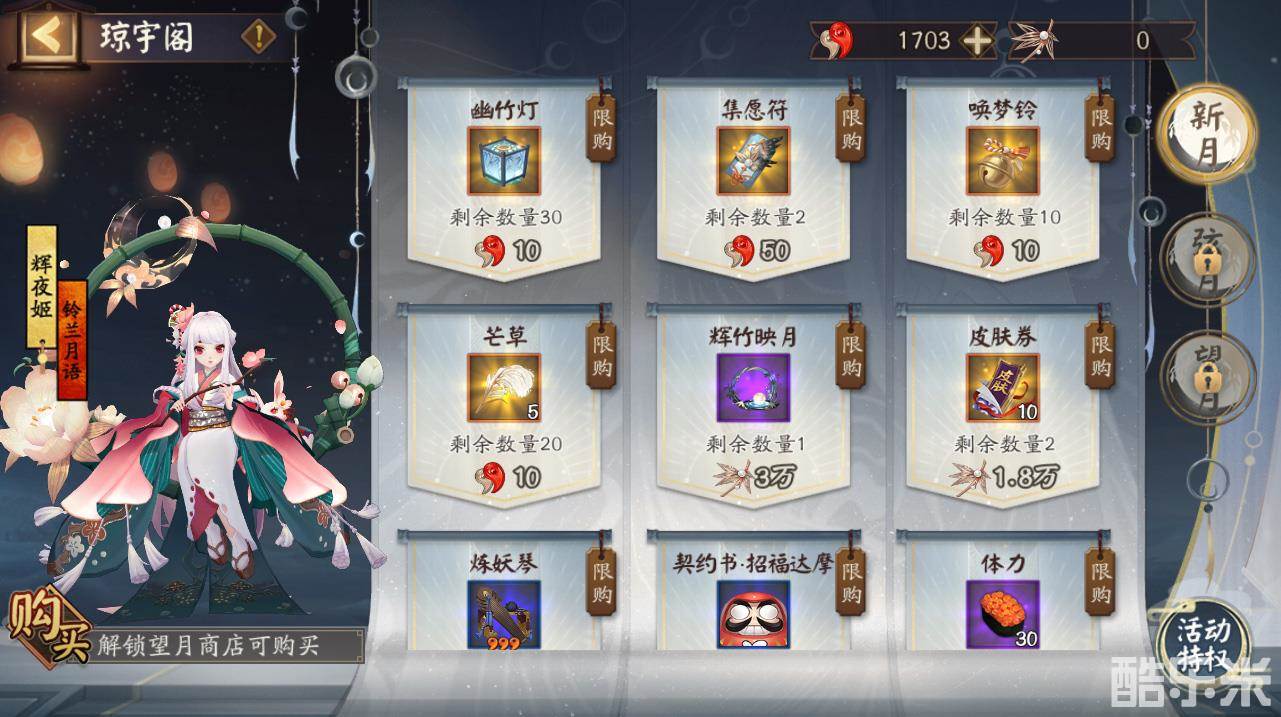 「幽竹灯」将在每日0:00自动回复30个,阴阳师们也可以通过琼宇阁进行购买。
