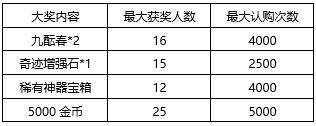 5.21:00开奖公布中奖名单,大奖会同时发放到中奖角色并邮件通知;