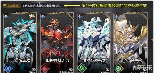 每个虚数体都有【虚数降临】和【加护技能】,只有1号位和援助位的加护技能会生效。加护技能会提高团队的属性伤害或基础面板。