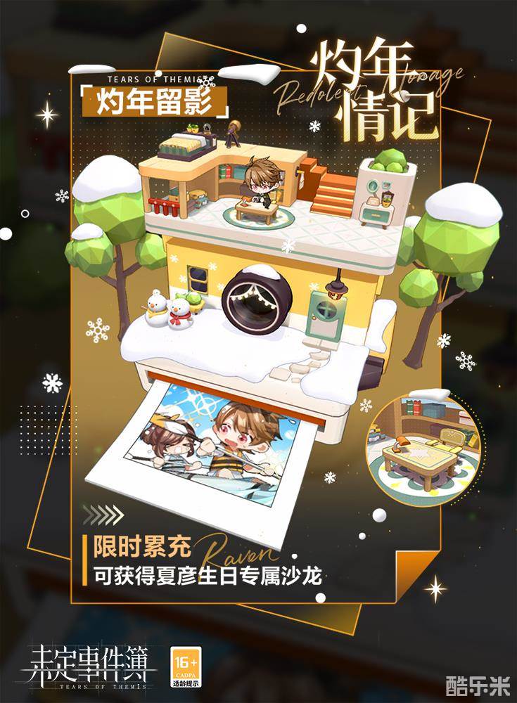 11月25日起,「灼年情记」限时累充活动开放,活动期间,累计充值达到指定金额,即可领取「灼年留影」全套家具(共10件)、【女神之泪】、【法理之谕IV】及【未名币】等多样奖励。