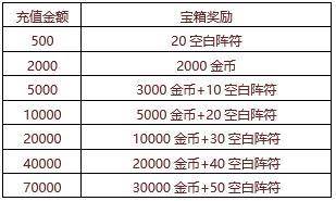 【活动内容】金币奖励满额返还,额外赠送大量空白阵符,天地水火,风雷山泽,奇门阵符,尽收囊中,一切尽在本期月末超值大放送。