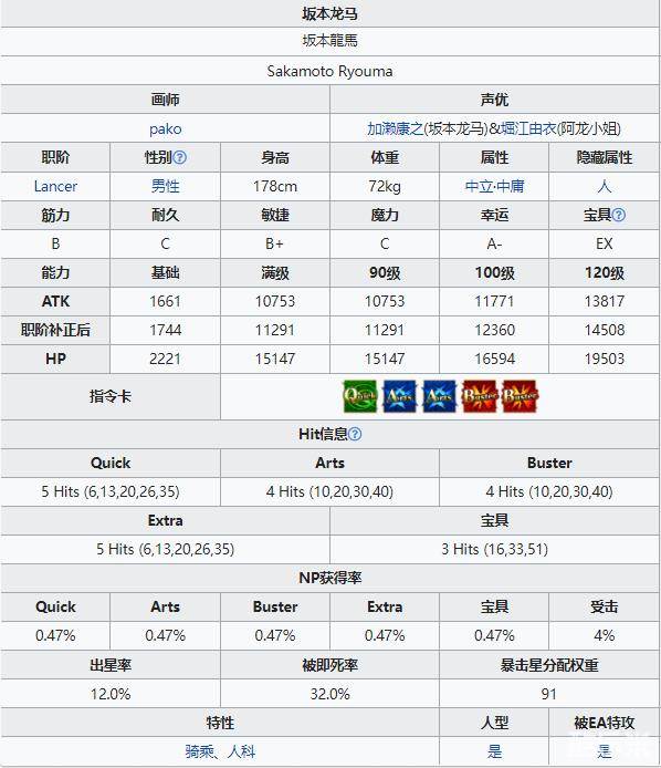以上就是小编整理的关于《FGO》枪阶坂本龙马技能属性一览的全部内容