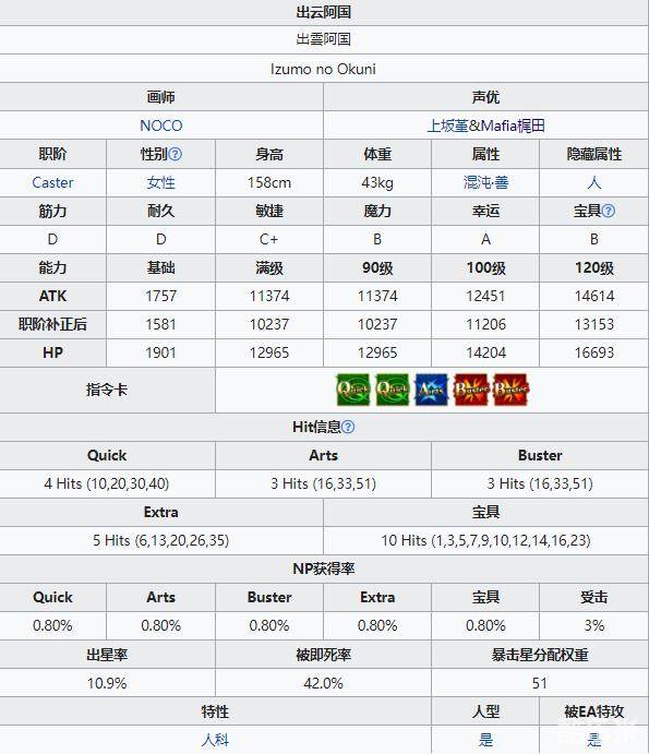 以上就是小编整理的关于《FGO》出云阿国技能属性一览的全部内容