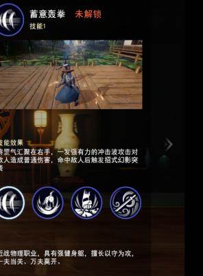 【蓄意轰拳】:一技能为范围输出,释放之后进入到蓄力状态,此时周围的敌人会受到罡气攻击,然后以自身为中心造成大范围输出。如果成功击中敌人,还可以释放而二段的追击技能-幻影突袭。