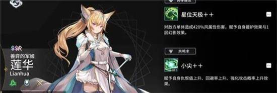 对敌方单体造成420%风属性伤害,赋予自身1层幻影效果与援护效果。
