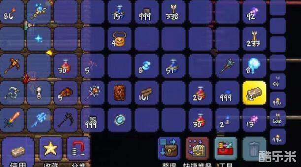 1,太空枪:需要陨石锭来制作,是一把魔法类型的武器,可以打出三发绿色的激光;