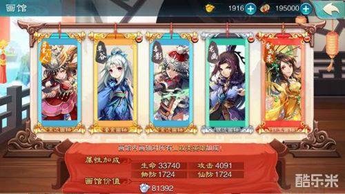 在修炼功能里可以找到画馆功能,画馆包含多张地图,每张地图有3~4个画馆,画馆按照等级顺序依次开放,每个画馆可以悬挂5幅角色画像,角色可以选择一种画像来使用,增加各项属性。每个画馆内的每个角色,都有自己的落款印章,落款需要解锁,并可以培养。画像有等级和品质区分,随着玩家等级的提升,可购买更高等级的画像。
