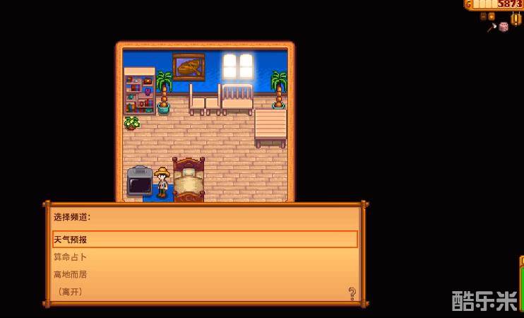 当玩家进入游戏之后,我们会在自己的农舍醒来,在最初的小屋中,我们会拥有一张床和一个电视。游戏中的电视还算是比较关键的信息来源途径,玩家打开电视可以观看不同的频道,频道中的内容会每天更新。其中的频道分别是【天气预报】、【每日占卜】、【离地而居】和【酱料女皇】。