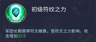 军团长期佩戴符文徽章,受符文之力影响,攻击增加33.9