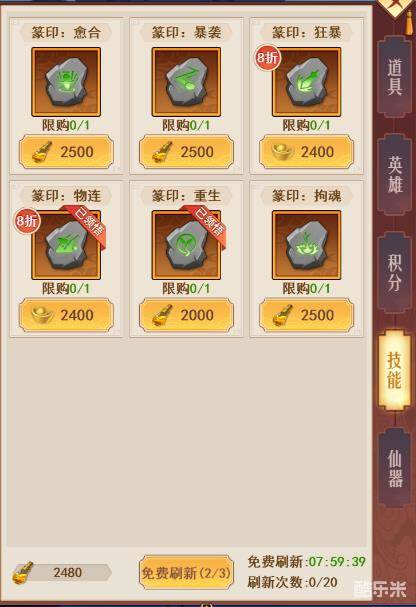 另外,我们还可以用鎏金粉来购买用于英雄天赋领悟和升级的篆印