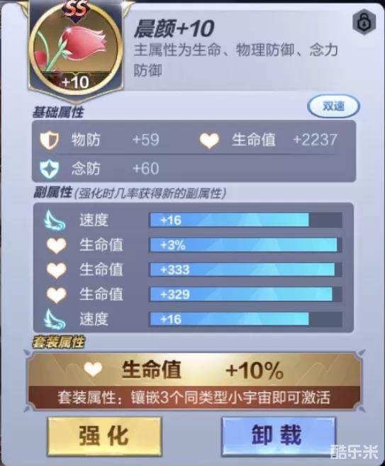 对比起晨颜来说,双修要逊色一些,如果说晨颜是黄金圣斗士,那么双修就是青铜圣斗士。双防比晨颜还要高不少,但是生命值属性却相对较低,只有套装效果的10%,相比晨颜、坚韧等常见的月相宇宙,双修少了数千的血量,对斗士的生存影响极大;