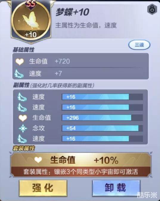 珍贵的月相之一,主属性中的物防变成了生命值,其他属性一样,所以适合使用符命的斗士都可以使用梦蝶