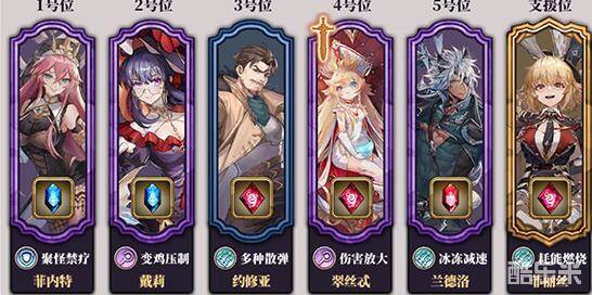 2、绯石之心炎狱寒境阵容搭配还是非常简单的,玩家搭配成功可以在对局中发挥非常好的作用,不过这个阵容也是有缺点的,那就是成型需要的时间是非常久的,因此玩家要通过组合技能和支援技能提高强度,推荐的组合技能是迟援反制,诱杀,能量灼烧,推荐的支援技能是禁止光环。