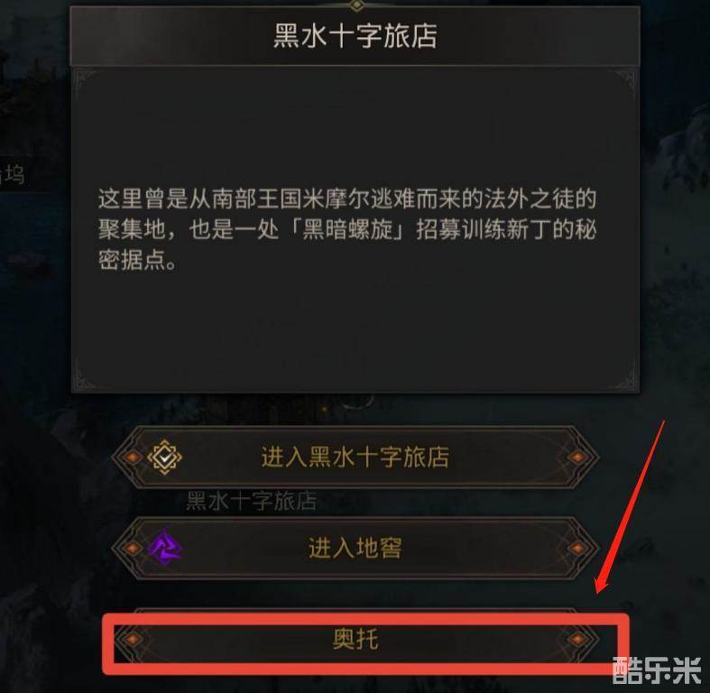 2、点击进入黑水十字旅店即可找到奥托,可以在奥托处进行交易。