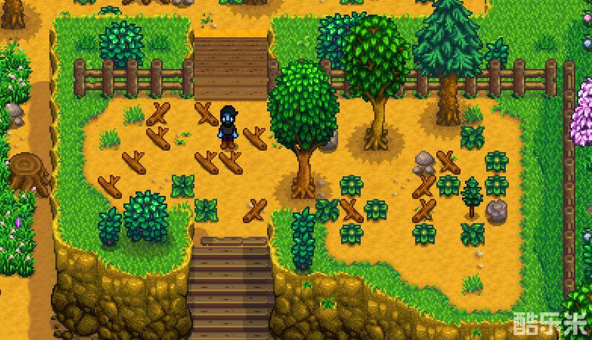 地图的另一大特色是有一条森林河流横穿过地图中央,在这里可以掉到与森林一样类型的鱼。不过由于森林河流和不同的悬崖分割,导致地图的可耕种面积减小,这也对耕种地和耕种种类的选择增加了难度,因此前期建议先种些过渡的农作物,如果可以的话尽量选择价值高的农作物,这样有利于在相同的规模下进一步提高收入,然后后期转农牧业,或者干脆钓鱼起家。