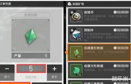 2、在采掘矿场消耗9产能加速生产5个低模数据。