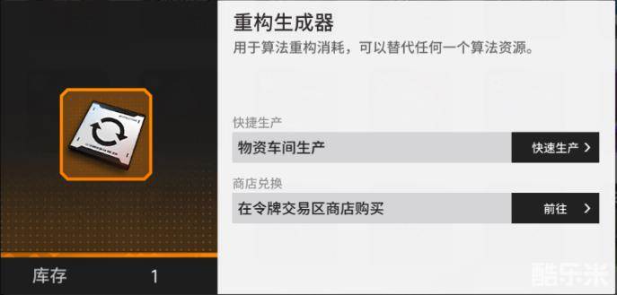 重构生成器目前仅有两种获得方法,一是通过物资车间的生产获得,二是在令牌交易区商店购买获得。