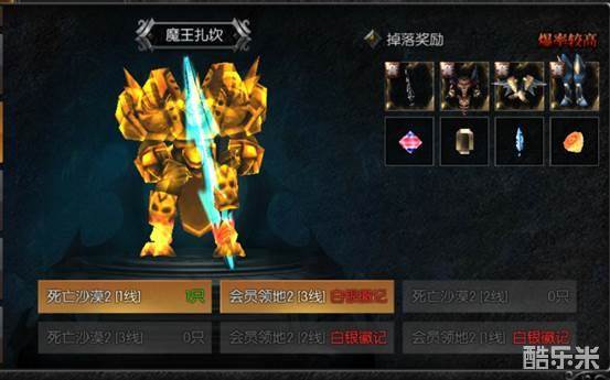 第一层图如下,虽然黄金怪就5只,但是有两个boss炽炎魔,在质量上非常高,击杀后掉落奖励也十分丰富。