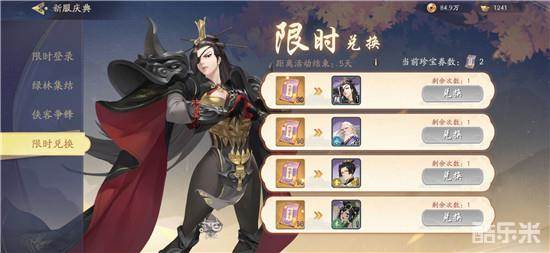 主界面右上区域找到“新服庆典”,进入后点击“限时兑换”就能使用珍宝券兑换奖励了