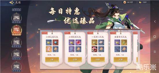 2、氪金。右上角“充值”里面找到每日礼包,第一栏江湖支援礼包购买可以获得珍宝券