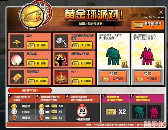 持有黄金球,出现20秒违例时,对方获得黄金兑换券。