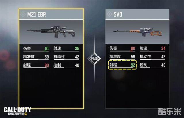 作为一支默认载弹量达到10发的半自动狙击步枪,SVD和老大哥M21 EBR尽管在伤害、射速、射程上各有千秋,但总体六维属性可谓不分伯仲,二者差异并不明显。