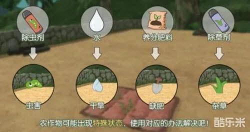 1.当农田上方漂浮着小铲子,即为缺肥状态,可使用粉色的特级喷雾器,选择养分肥料作填充物为农田施肥