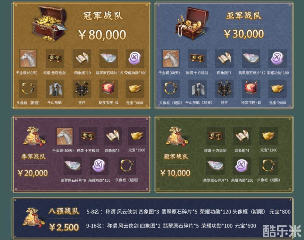 层层对决,战至终章!本次大赛分为海选赛、通服决赛、跨服匹配赛、跨服淘汰赛与总决赛五个阶段。闯过前四个赛段,成功杀出重围的八强精英战队将在线下总决赛当中一决胜负,为冠军宝座挥剑而战!