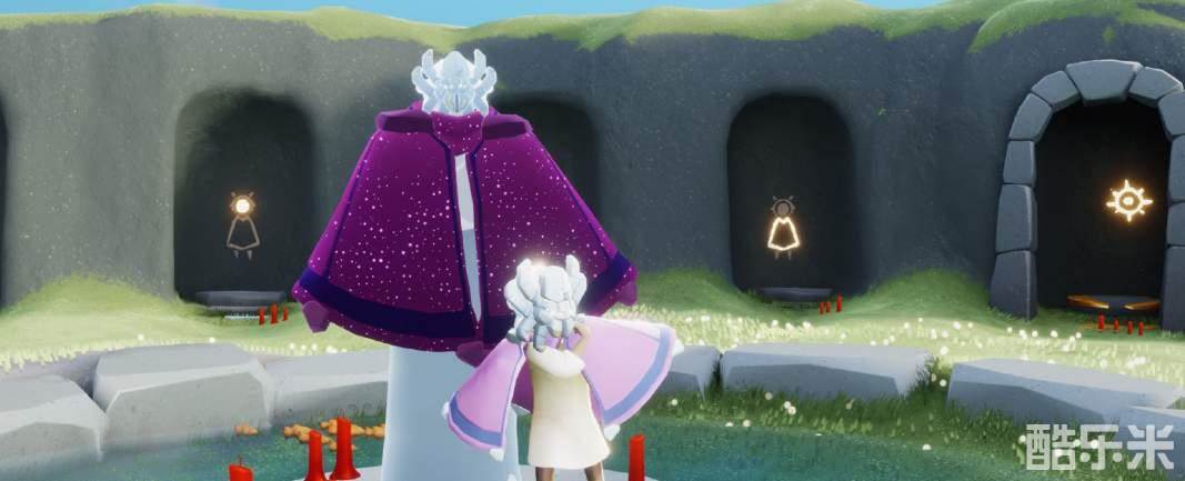 2、这个先祖的位置在晨岛-预言山谷-山谷深处的大厅内从左往右数第二个挑战的大门口,如下图所示,点燃心火后需要跟随先祖的影子完成几个阶段的追忆,之后就可以返回遇境与先祖兑换道具了;