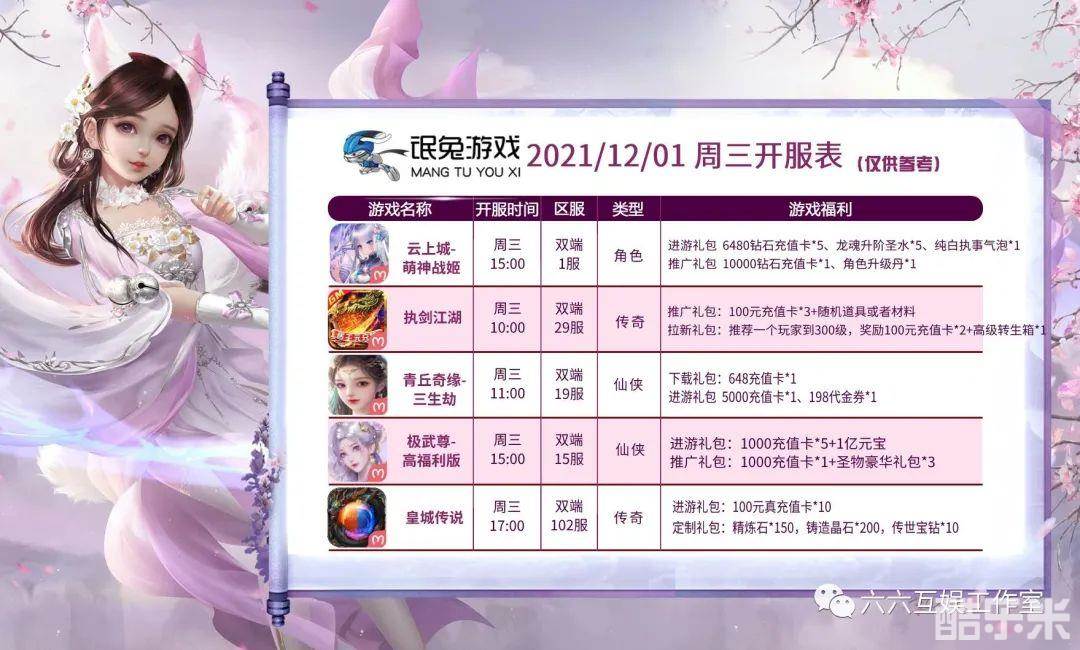 氓兔游戏官网-12月1号开服表《云上城-萌神战姬》连开8区
