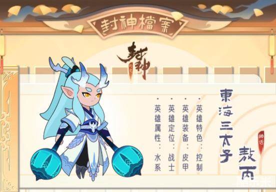 敖丙是一名以控制能力为特色的辅助型战士,拥有强大的群体控制能力和减益能力,在被动生命和速度加成的效果下往往能起到先发制人的作用,为己方输出角色创造输出空间