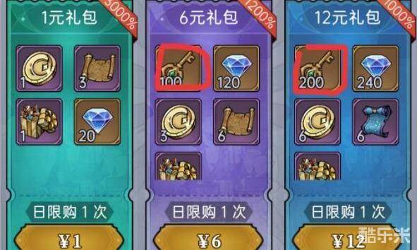 不过我们可以看到 ,每天6元和12元的礼包之中比之前的礼包多更新了这次活动的翻牌道具--仙境钥匙。