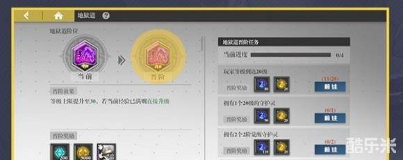 在面版的左上角可以打开地狱道的页面,地狱道就是表示的你的实力的功能,如果想提升自己地狱道的等级,需要去完成任务,每次的任务都各不相同,每完成一个任务都会获得奖励,而地狱道升级之后就可以解锁更高的等级上限,还能获得提升阶级的奖励。