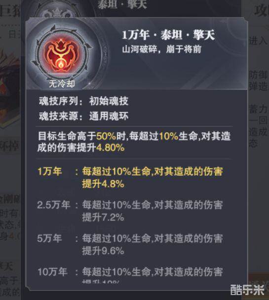 这两个魂环就是很明显的一个对比,蝶锋是触发是只要对方血量比例下降就提高伤害比较简单,擎天的触发条件还得是一个50生命以上,越高越疼,怎么说呢这东西。我之前给蝶锋的评价就是中肯偏下的,前期不建议携带,擎天这个魂环我给的评价甚至还要低于蝶锋,就现在PK环境来看,打的快的1-2回合就结束了,打的慢的比如铁王八给你带个擎天你也加速不了战斗的结束进程,打PK打悬赏,都不是一个很好的选择,唯一一个我能想到带擎天的就是一锤流的唐昊,直接第一回合拉满上限,别的阵容我暂时想不到,有一锤流唐昊的小伙伴可以去试试带擎天打第一回合的爆发,要是好用的话记得回来和我说一下,暂时我给的评价是中肯偏下的。