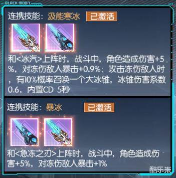 在前期没有拥有更好更强的ssr武装时,利用冰汽本身的技能+被动+连携,在敌人冻伤时,两把武装都一星的情况下暴击+5.6%!暴击的收益前期只能靠武装,后期靠异能石和装备,前期能有5.6%属实难得了!