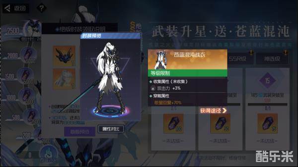 而每件单件都能提供不俗的属性加成和独特的能力提升!只要收集足够的苍蓝之火就可以免费领取全套的【苍蓝混沌】。