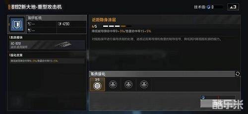 2、它的弱项只有两个,攻城和防御。攻城伤害我们可以先放一放,毕竟没人会依靠战机攻城。其次是防御,该战机的防御评价为C,所以我们加点的时候要提升它的生存能力,还是那句话,活着才能输出。所以在装甲系统,我的加点建议为:提升对导弹闪避(优先,因为加满这个技能只需要五点技能点)+装甲血量(根据自己的实际情况决定)。