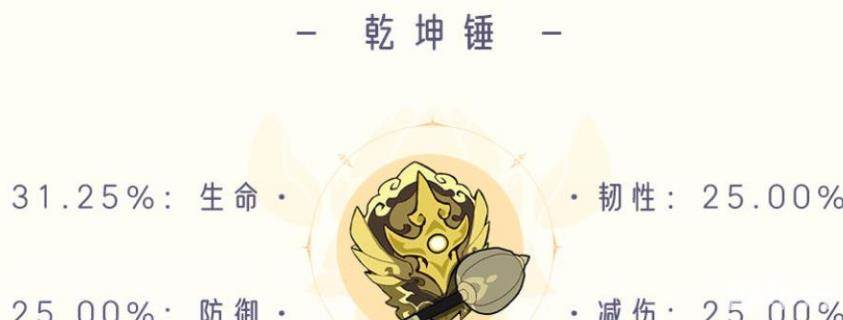 黄天化的专属武器名字非常响亮,叫乾坤锤。当处于一级的时候,高于自身血量的目标发起对黄天化的攻击时,会增加两成的减伤值,同样情况下,达到二级时可以提升百分之三十的减伤值以及百分之四十的减伤值。当等级达四级后,可以对援护的队友进行恢复生命力的操作,恢复量达到两成。