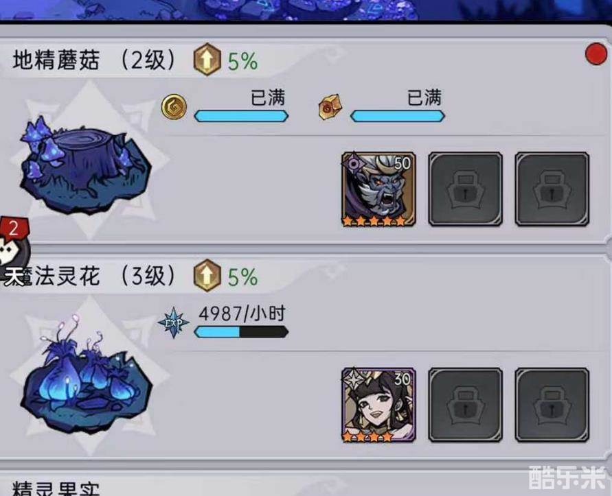 玩家可点击水晶湖进入,里面有着好多的玩法,和冒险模式差不许多,都是要进行挑战BOSS关卡,成功以后会得到少量的道具以及金币,先来看一下第一个玩法,名为地精蘑菇,玩家可选择一名角色也来进行挑战,总共有3个位置,但前期只会开启1个,剩下2个位置是要求地精蘑菇达到4级,达到7级才能启动。