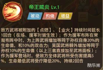 小结:根据技能我们可以不难看出,孙权作为一个单体+群体火烧+增益类型的武将,其作用类似于一个六边形战士,群攻上火烧buff,单体补火烧buff或者收割对面阵容,如果作为援军的话能大幅增加军团武将的实力,可以说是想要走吴国阵容的主公们居家旅行必备的好武将!