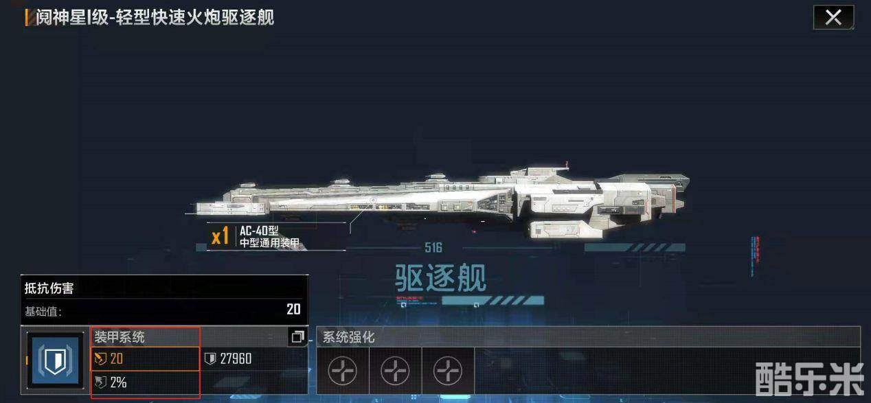 如果你还没看懂,那么举个例子:以首充送的阋神型为例,打开其舰炮系统能看到使用的是火炮武器,单发伤害40,有5门火炮,每3秒攻击一次,所以这艘驱逐每分钟对舰火力系统计算为40*5*(60÷3)=4000,和系统预测正确,但实战中如果攻击枪骑兵驱逐舰,其抵抗伤害为20,那么实际上的伤害为(40-20)*5*(60÷3)=2000。
