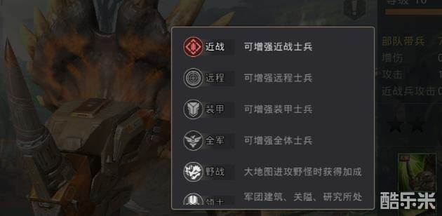 第二个方式可以通过搭配对应的部队来获得提升,游戏中每个巨兽都是有一些分类的。比如说近战,那么这个巨兽就可以为近战的部队带来不错的加成,在战斗中搭配好对应的近战部队之后,巨兽的寻养殖可以获得提升,同时部队的作战能力也是可以获得增加的。