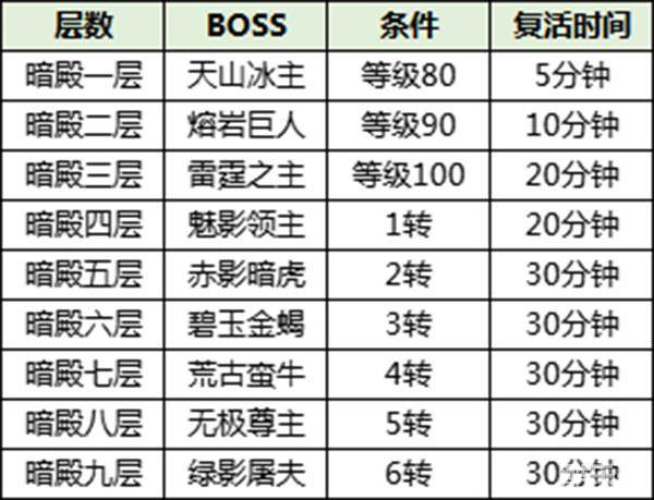 首领挑战-暗殿符合要求就能进入相应层数,暗殿会掉落很多稀有道具